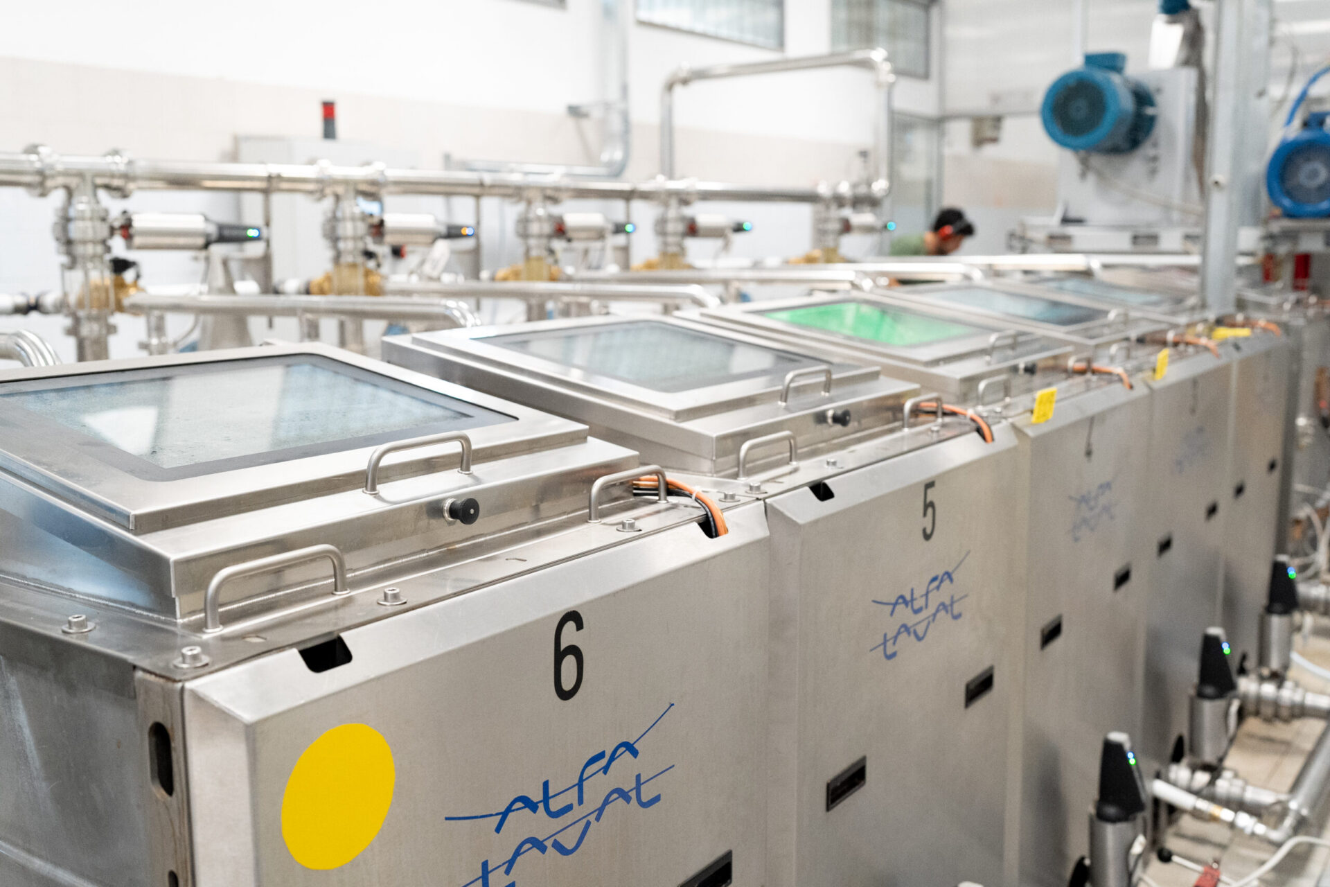 A striking glass wall reveals the olive oil production line, creating a truly unique backdrop and immersing your guests in the heart of tradition.